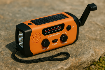 • Radio AM/FM con manivela y carga solar: información y comunicación cuando las redes fallen.